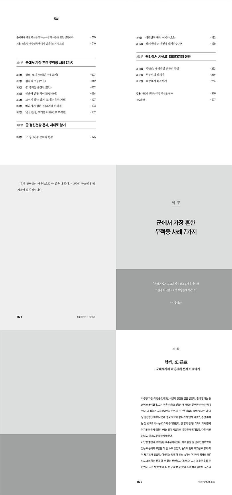 임상심리전문가이자 군 병영생활전문상담관. 일선에서 병사와 간부를 마주하다가, 현재는 병역심사관리대에서 심사 관련 업무를 하고 있다. 아주대학교에서 임상 심리학을 전공하고, 상담 센터 상담 및 심리평가 전문가로 경력을 시작했다. 이후 법정에서는 진술분석가로, 학교에서는 학교폭력전담조사관으로, 그리고 경찰서에서는 범죄심리전문가로 활동하는 등 다양한 장면에서 다양한 사람의 다양한 고통을 만나 왔다. 주요 저서로 『임상심리전문가의 마음설명서』 등이 있다.