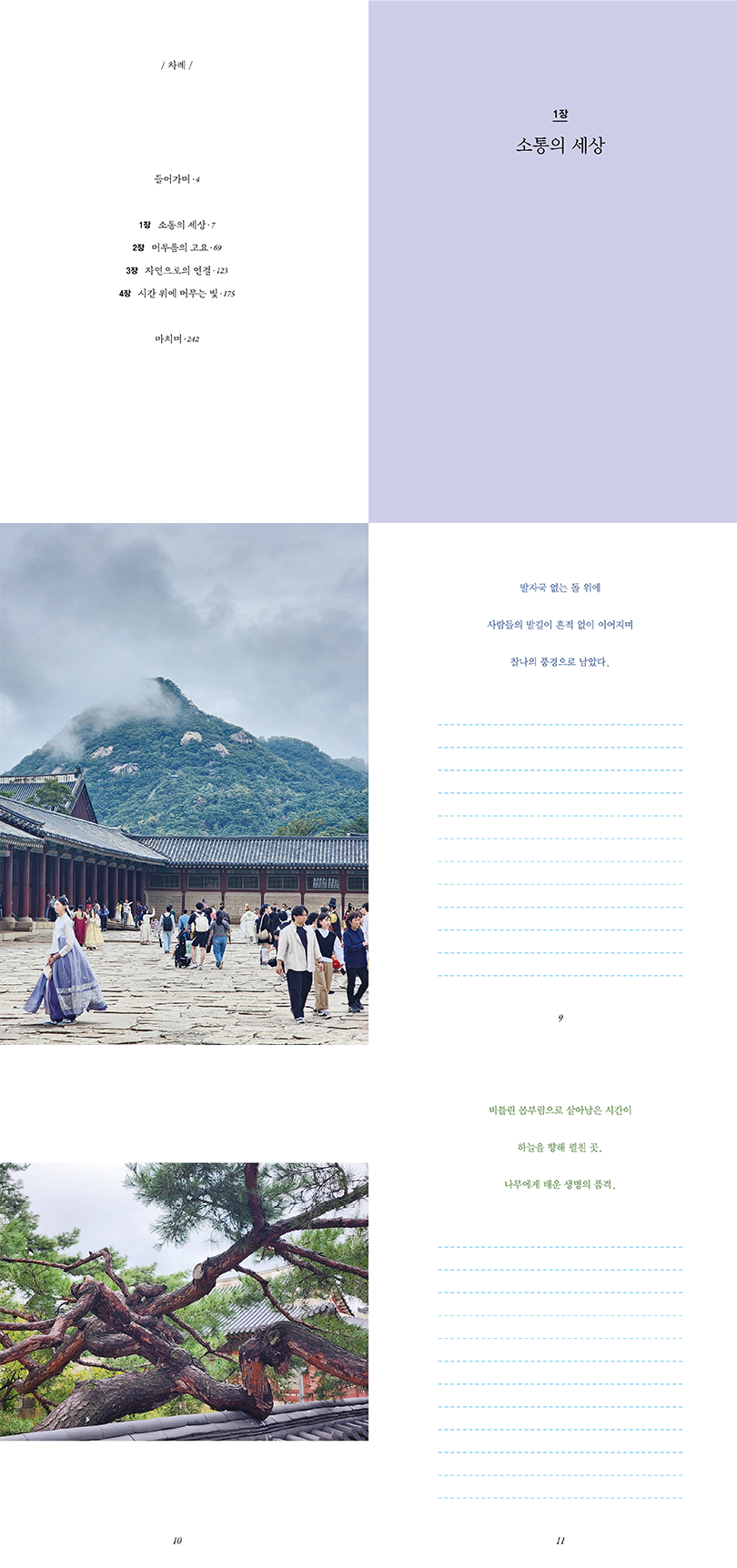 그렇게 사진을 찍은 지 5년이 되었을 때 첫 전시회를 열었고, 20년이 된 지금은 책으로 그 시간을 기록하고자 한다. 사진이 내게 그랬듯, 이 책이 독자 여러분에게도 작은 위안과 사색의 기회가 되기를 바란다.
