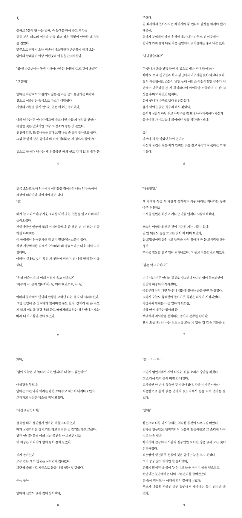 그녀는 글을 붙잡았다. 쓰는 동안 지난 눈물들이 한 줄 한 줄 녹아내렸고, 그렇게 태어난 이야기가 바로 〈미숙이〉다.