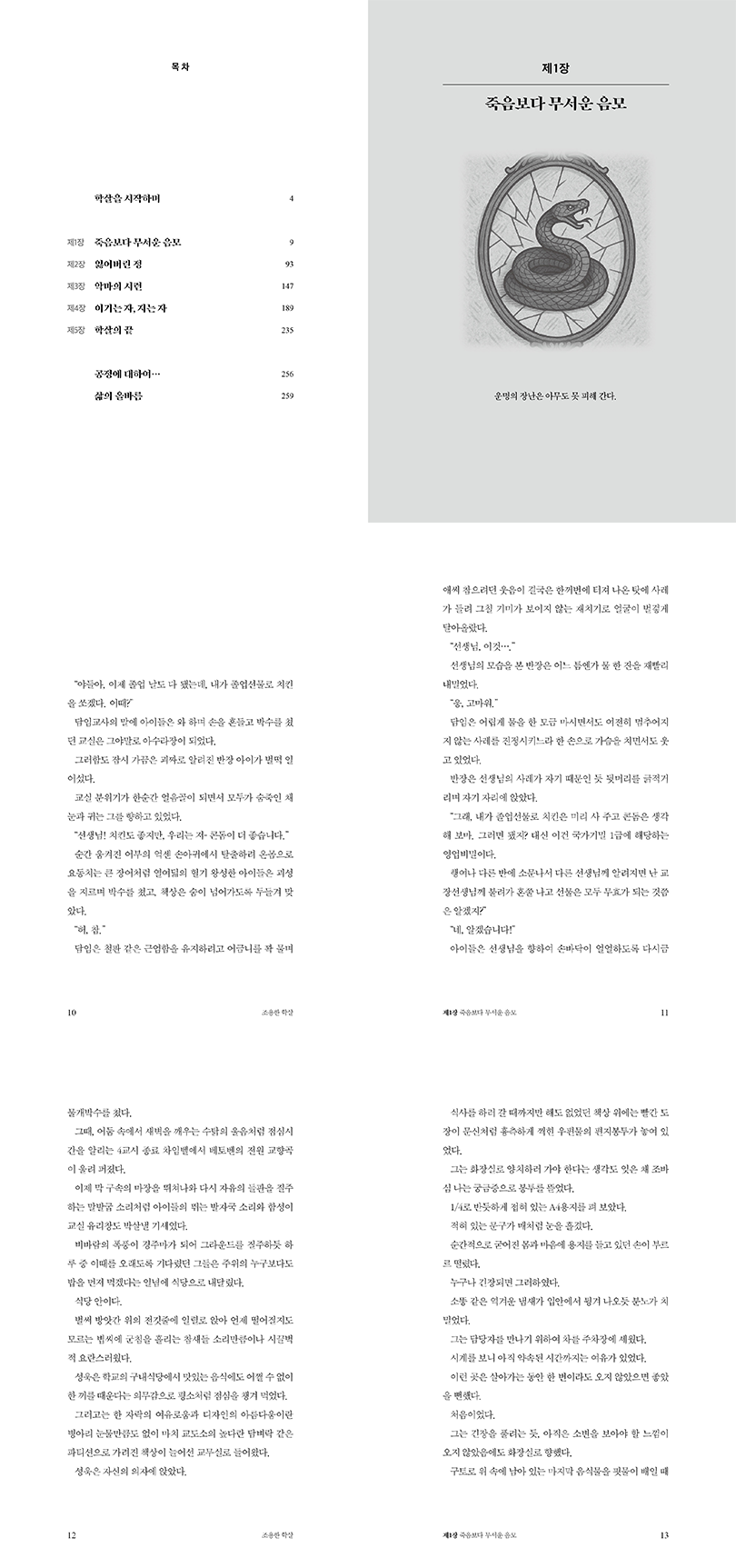 저자는 학생들에게 가장 모범적이고 사회생활의 출발점이 되어야 할 교육 현장에서의 부조리와 편법 그리고 불공정에 대해 화두를 던진다.