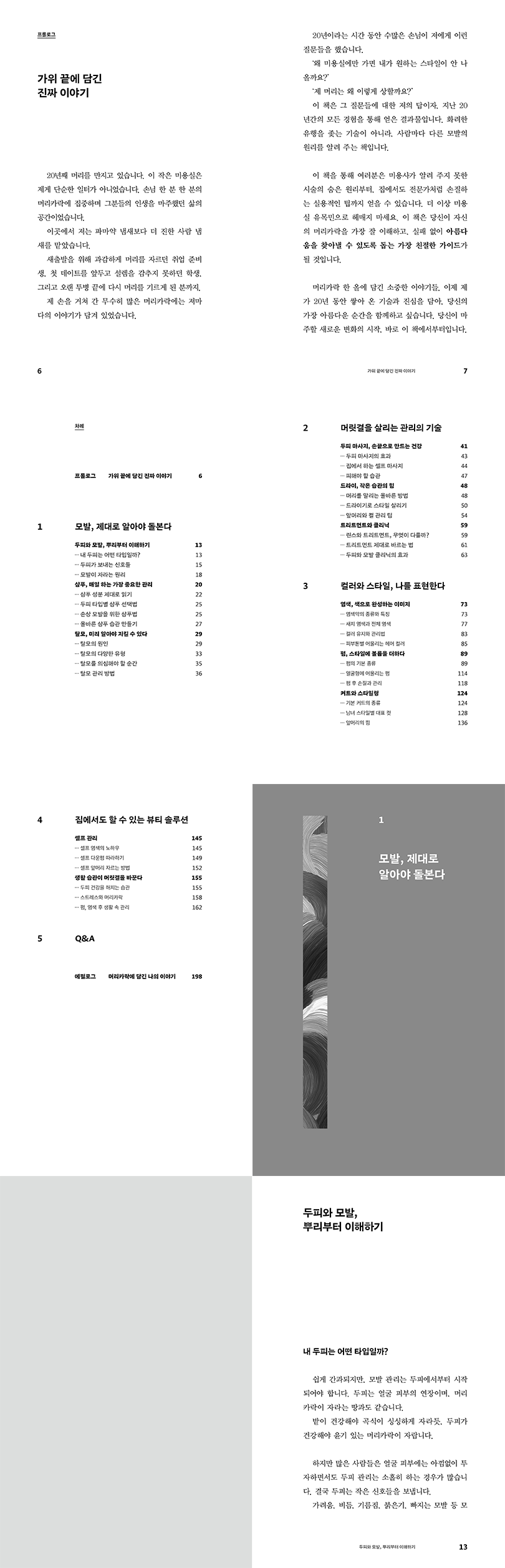 오랜 경험을 통해 얻은 노하우와 현장의 이야기를 바탕으로 누구나 스스로를 진단하고 미용사와 원활히 소통하며, 각자의 아름다움을 만들어 갈 수 있는 방법을 전하고자 한다.