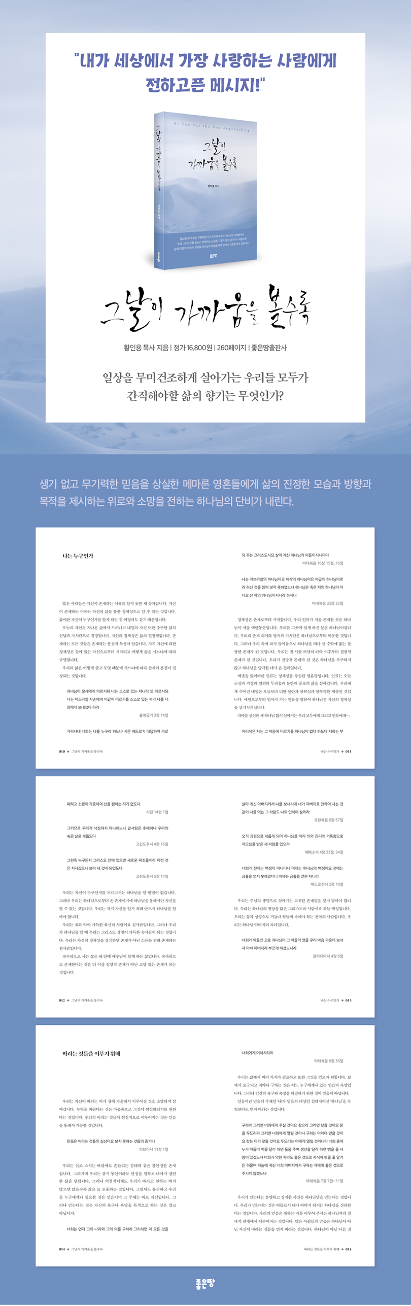 이 글을 이 땅에서 구원을 이루어 가는 믿음의 사람들에게 보냅니다.