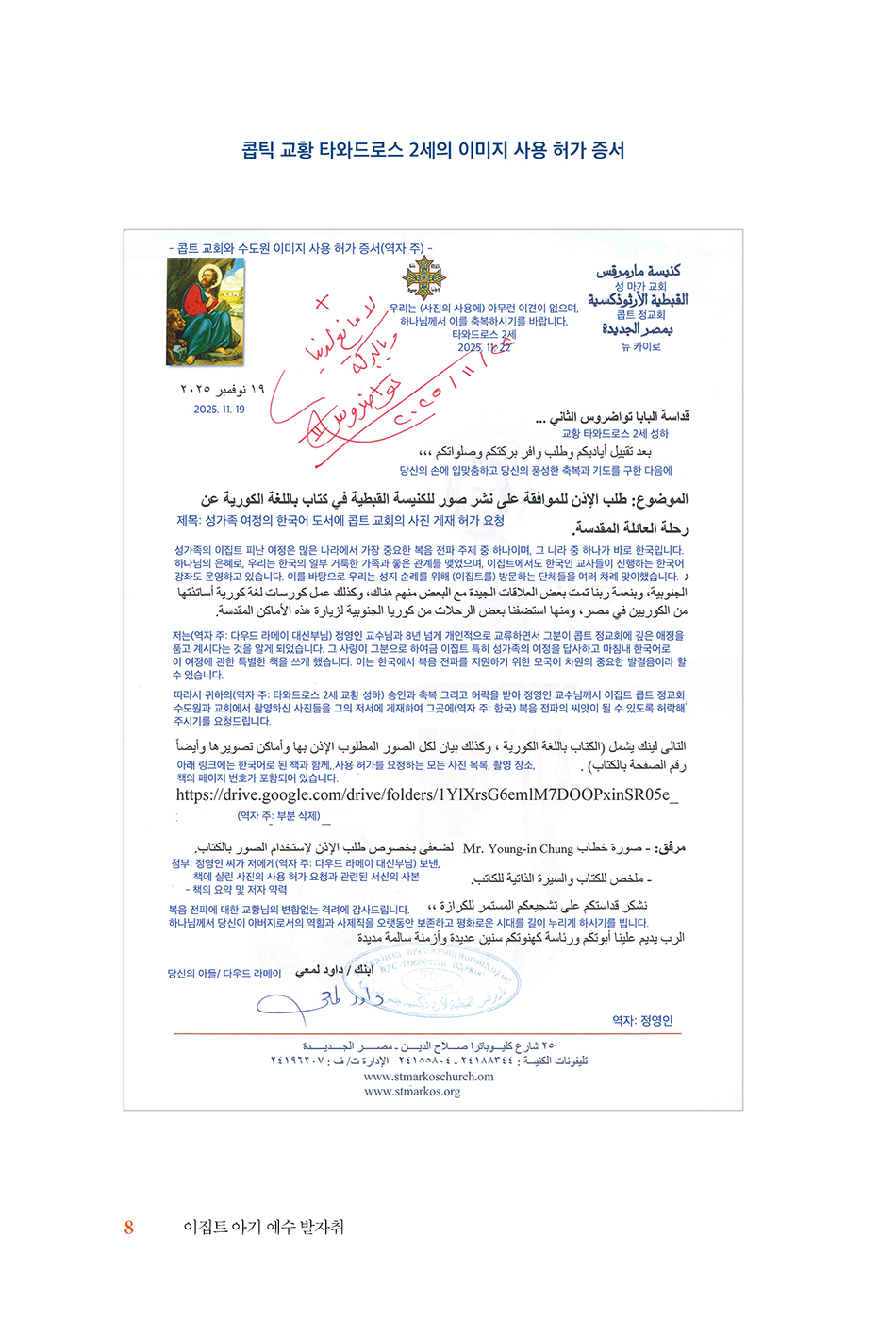 콥틱 교황 타와드로스 2세의 이미지 사용 허가 증서