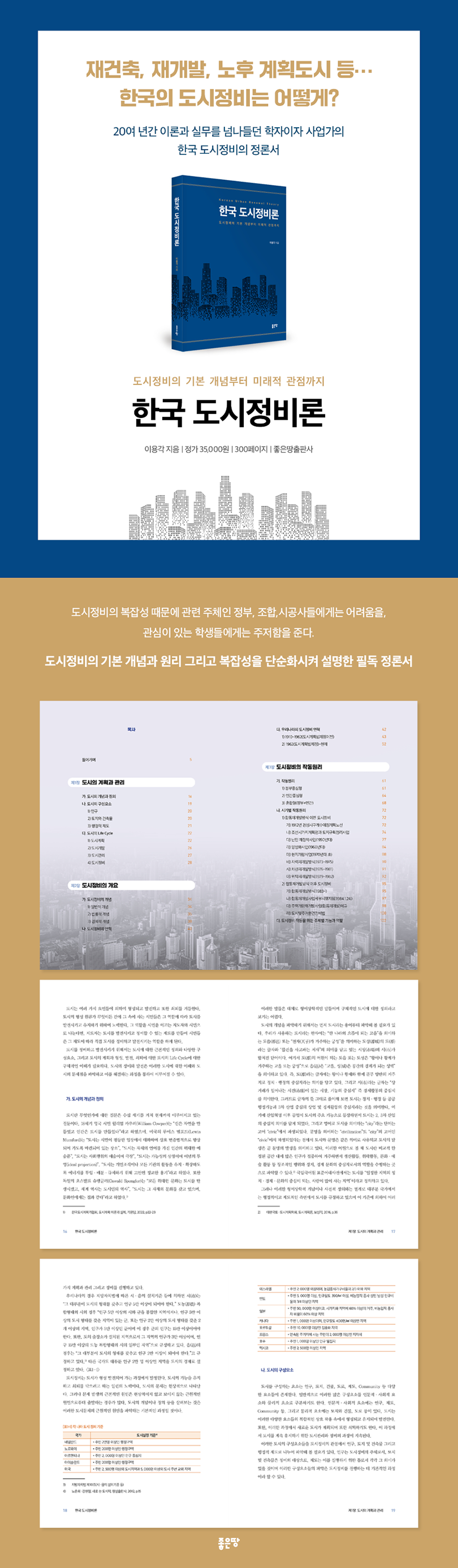이러한 생각의 끝에 그래도 도시정비 분야에서 오랫동안 다른 사람들보다 조금 더 경험하고 이론적인 체계의 확립을 위해 노력했던 한 사람으로서 이러한 어려움을 해결하기 위해 힘들어하며 열심히 노력하고 계시는 공무원, 조합원, 시공사 직원, 입문을 고민하는 학생 그리고 도시정비와 관련된 일을 하시는 분들에게 조금이나마 도움을 드려야겠다고 이 책 쓰는 것을 시작하였다.