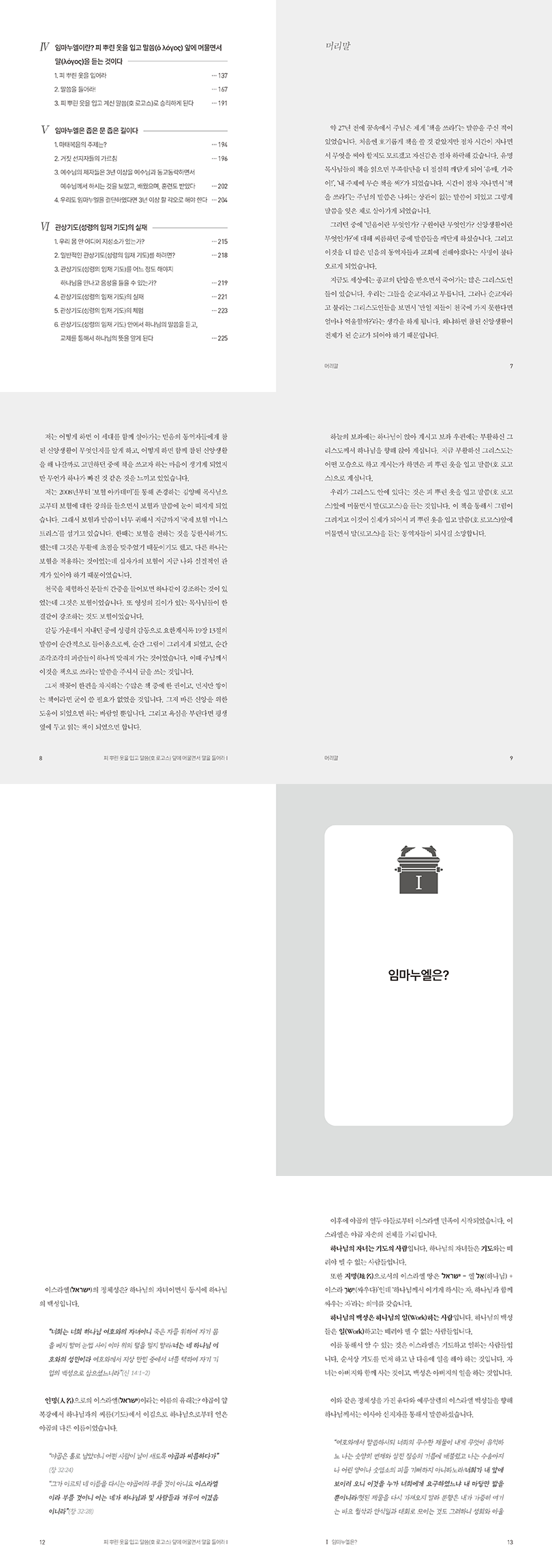 이 책은 ‘임마누엘’이라는 개념을 중심으로 신앙의 본질을 집요하게 파고드는 신앙서다. 저자는 하나님과 함께하는 삶이 무엇인지, 그리고 그것이 왜 구원과 직결되는지를 성경 구절과 해석을 통해 풀어낸다. 단순한 교리 설명이 아니라 ‘말씀 앞에 머무는 상태’라는 구체적 실천을 강조하며 독자를 신앙의 본질로 다시 끌어당긴다.
