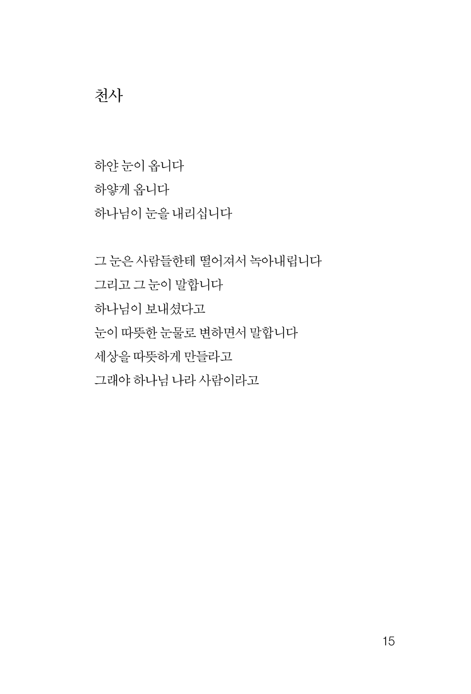 《하나님 나라》는 김성훈 시인의 신앙 고백을 담은 시집으로, 복잡한 설명보다 직관적인 언어로 하나님과의 관계를 풀어낸다. 짧은 문장과 담백한 표현을 통해 사랑, 용서, 믿음의 의미를 전하며, 독자에게 신앙을 보다 가까운 일상 속에서 바라보게 한다. 이 책은 거창한 해석보다 마음으로 읽는 경험을 지향하는 작품이다.