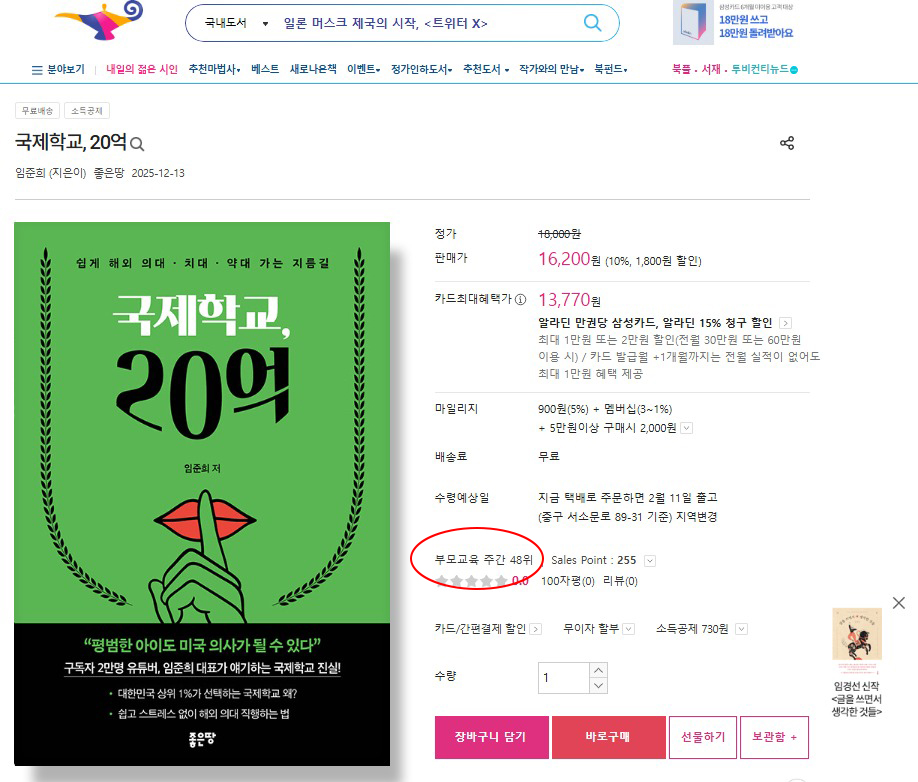 ‘국제학교, 20억’이 알라딘에서 48위를 기록했습니다.