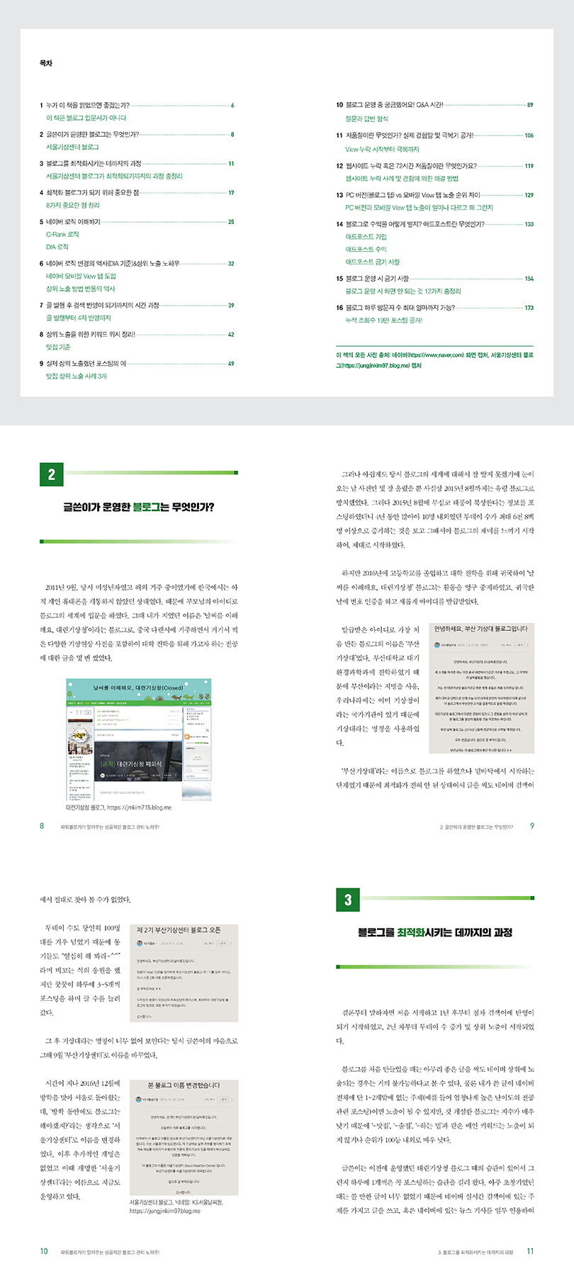 본 책은 블로그를 처음 시작하고자 하는 사람보다는 이미 블로그를 만들고 다 꾸민 상태에서, 어떻게 글을 쓰면 최적화 블로그가 될 수 있는지, 그리고 내가 열심히 작성한 글을 어떻게 하면 네이버 모바일 통합 검색(줄여서 모통검 View 혹은 뷰탭)에 노출시킬 수 있는지에 대해서 궁금한 사람들을 위한 책으로, 입문서가 아님을 유의하여야 한다.