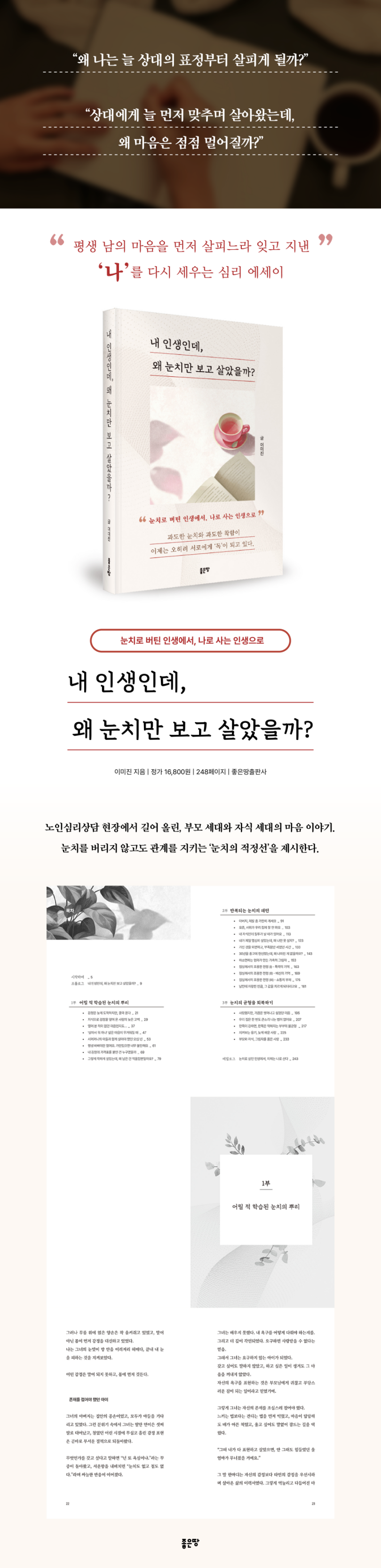 『착하게 사는 게 뭐가 그리 중요하노?(개정판)』의 후속작으로, 노년의 부모님을 걱정하는 자식들과 ‘눈치로 버틴 인생’에서 벗어나고 싶은 모든 이들 에게 “이제는 당신을 위해 살아도 된다”는 따뜻한 용기를 전한다.