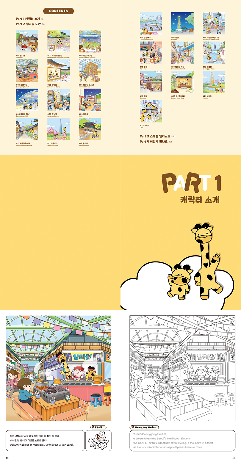 긴목이잘목이의 서울 여행 컬러링북! 긴목이와 짤목이가 안내하는 서울 여행!
