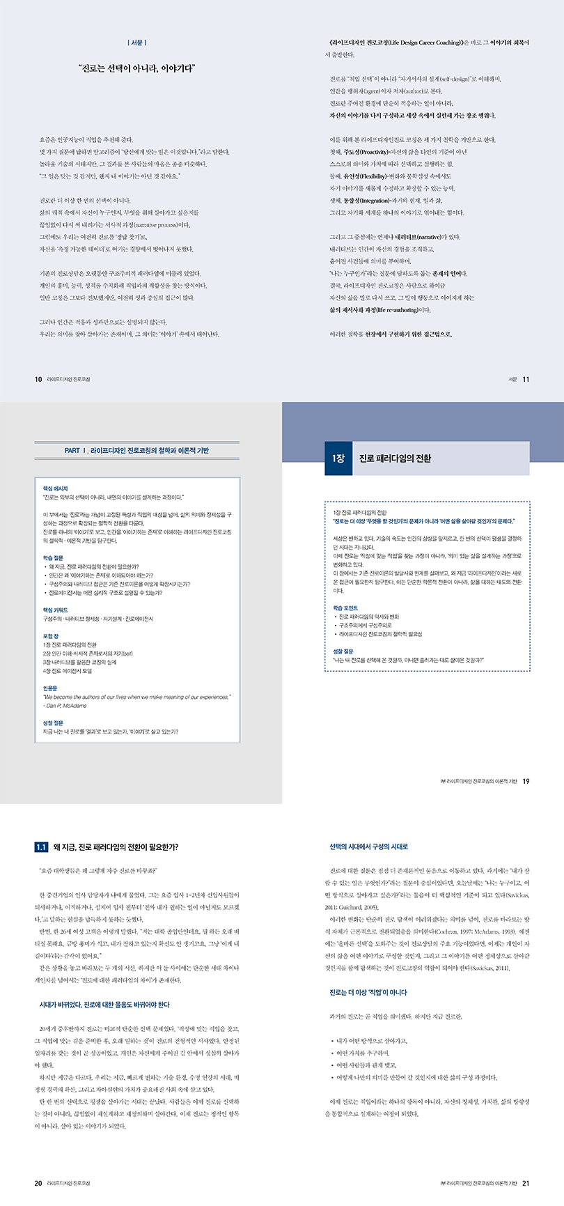 성격 · 흥미 · 적성 중심의 기존 진로이론의 한계점을 인식하고, 내러티브 기반 진로진단도구 개발, 라이프디자인 진로코칭 프로그램을 개발하였다.