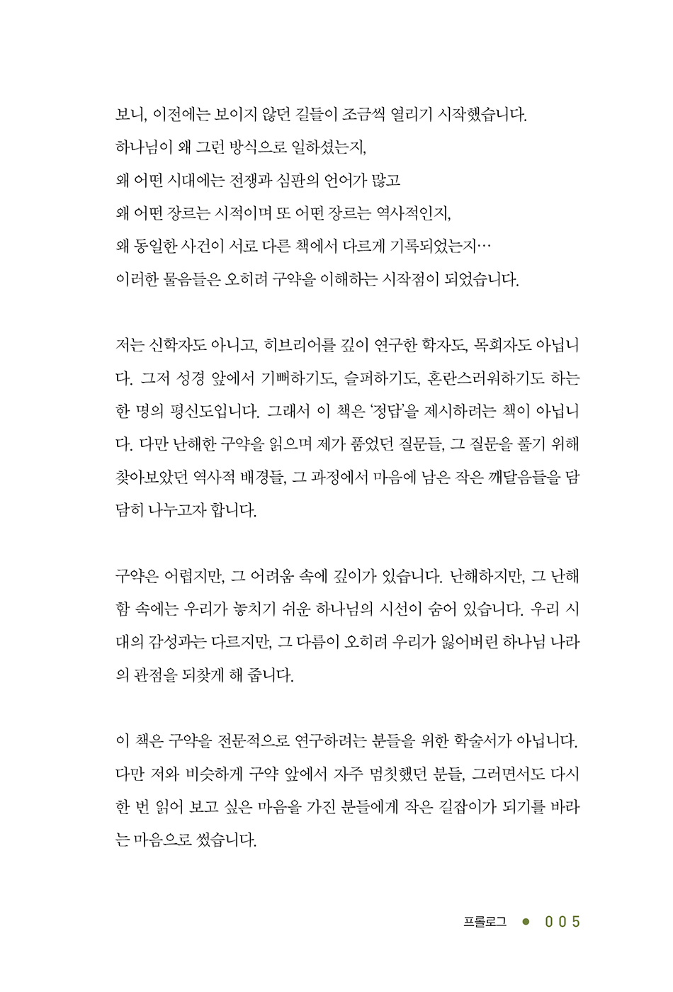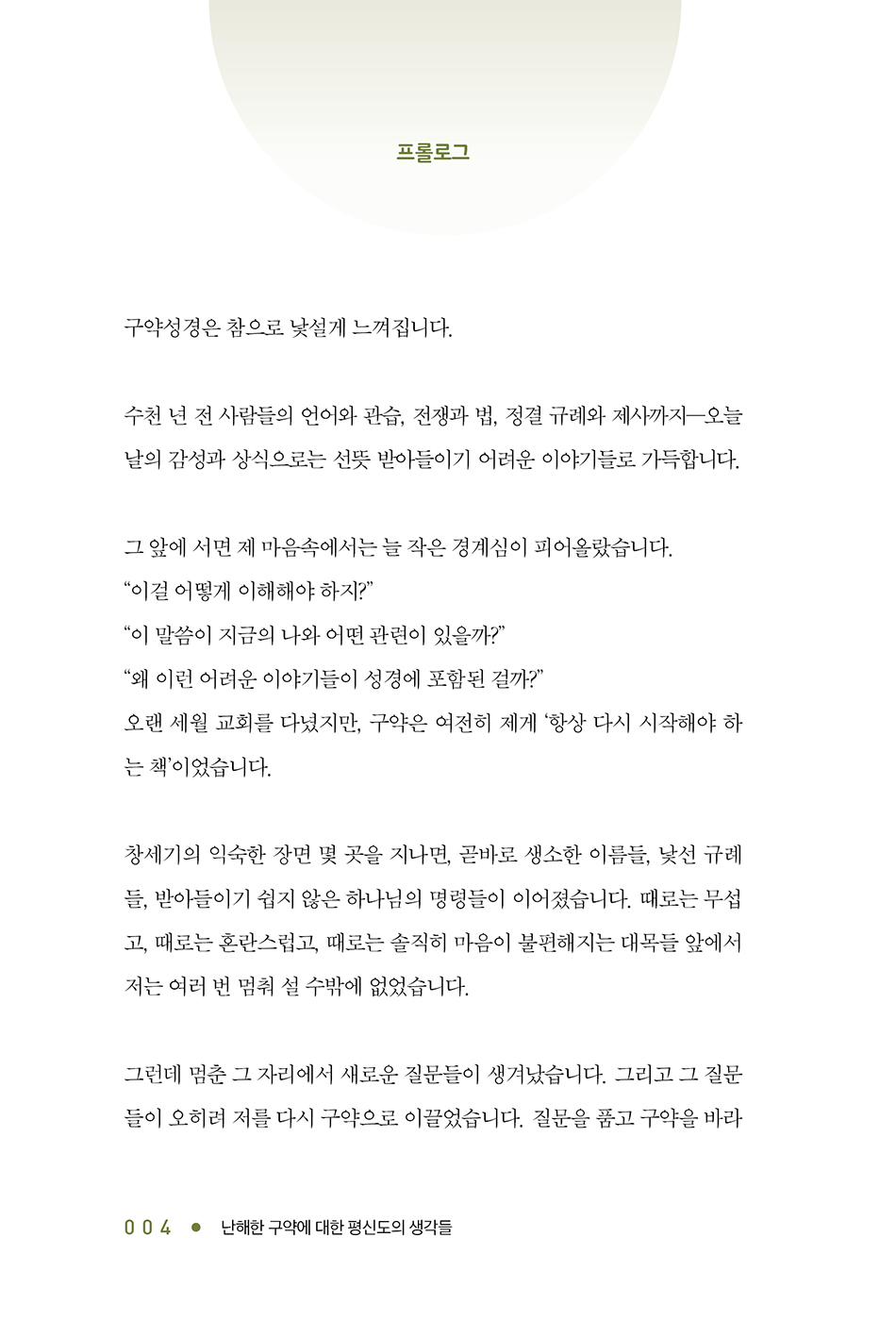 저자는 정답을 말하기보다, 구약을 읽으며 품은 질문들과