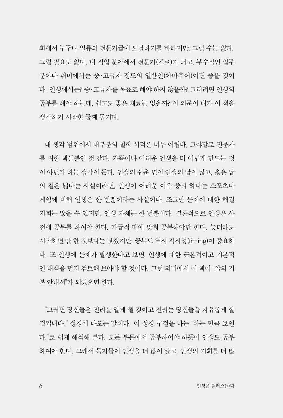인생은 어렵고, 정답이 없다고들 말한다. 그러나 『인생은 플러스(+)다』는 그 통념에 질문을 던진다. 인생에는 단 하나의 정답이 있는 것이 아니라, 수많은 ‘옳은 길’이 존재하며 그 길은 생각보다 넓다는 것이다.