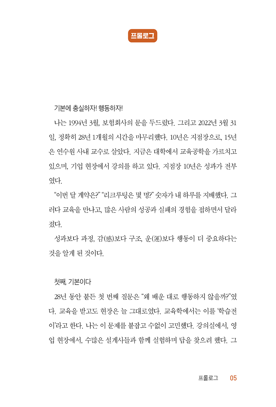 영업은 감이 아니라 구조이며, 성과는 기본과 행동에서 만들어진다는 철학을 바탕으로 보험 영업 행동훈련과 활동 코칭을 진행하고 있다.