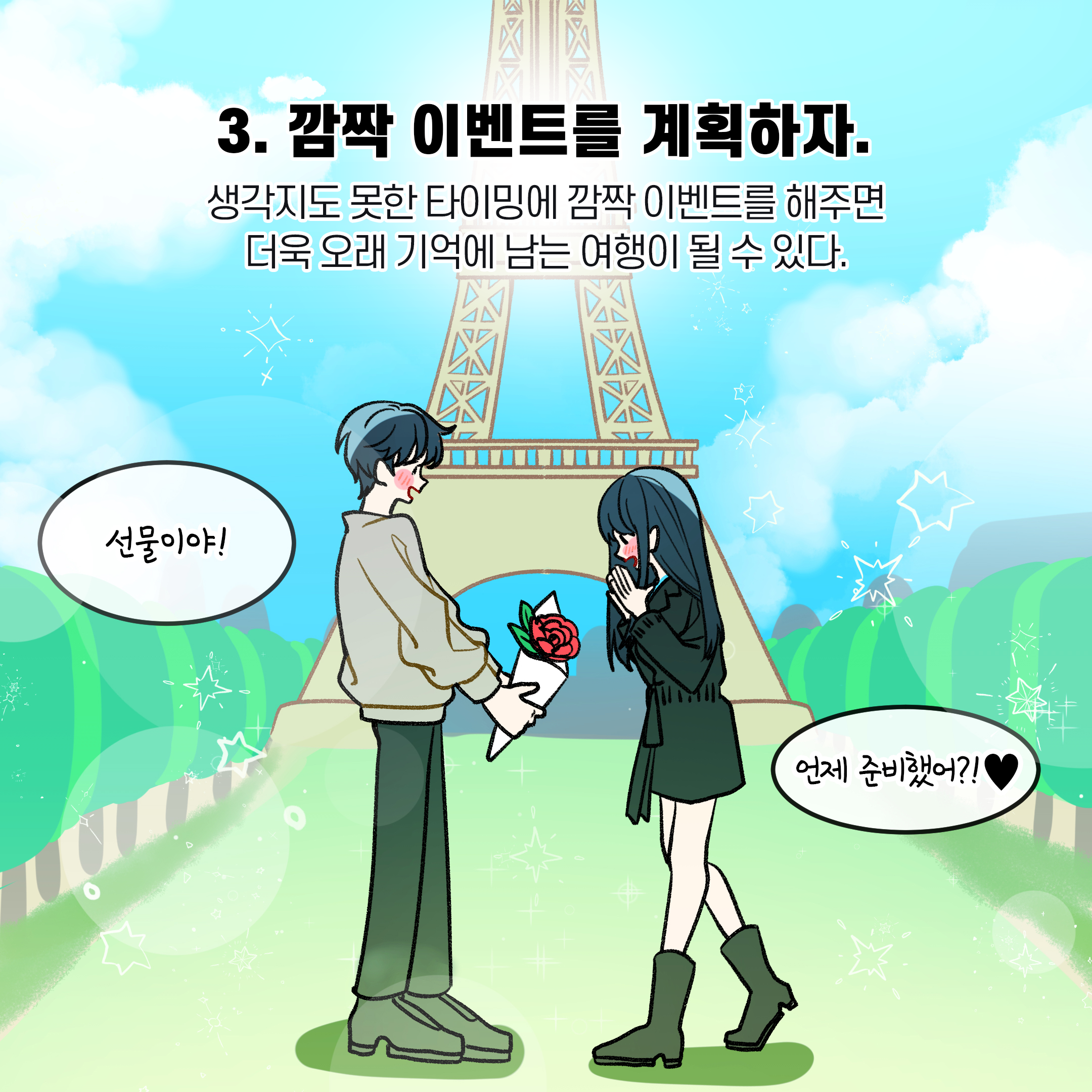생각지도 못한 타이밍에 깜짝 이벤트를 해주면 더욱 오래 기억에 남는 여행이 될 수 있다.