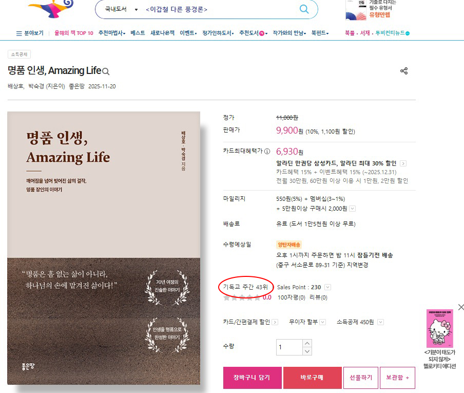 ‘명품 인생, Amazing Life’가 알라딘에서 기독교 43위를 기록했습니다.