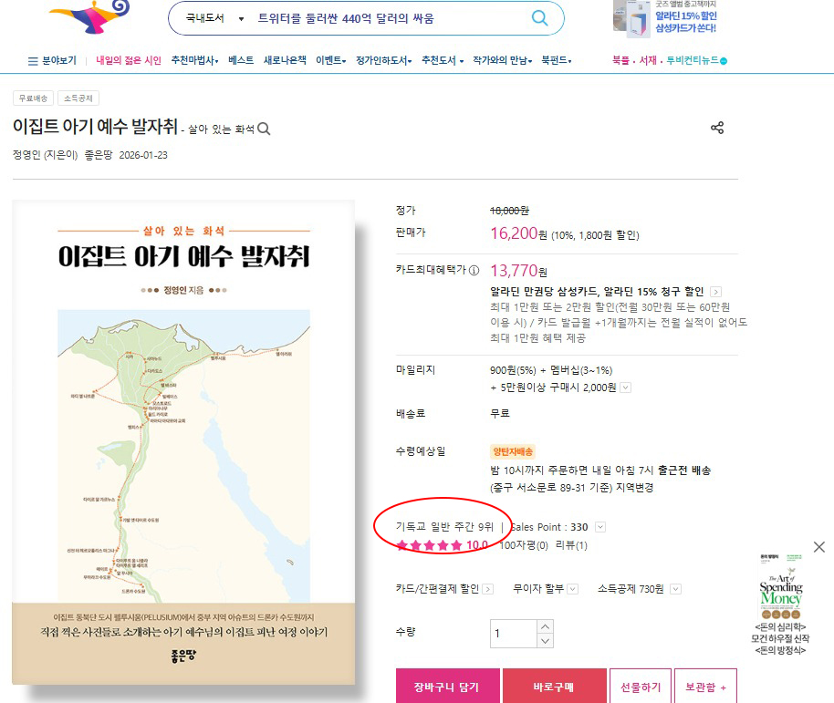 ‘이집트 아기 예수 발자취’가 알라딘에서 기독교 일반 9위를 기록했습니다.